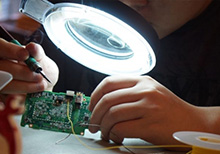 Сотрудник сервис центра исполняет восстановление: заменяет неисправную запчасть рабочей фирменной запчастью