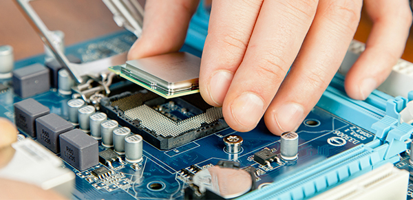 Сотрудник сервис центра исполняет восстановление: заменяет неисправную запчасть рабочей фирменной запчастью